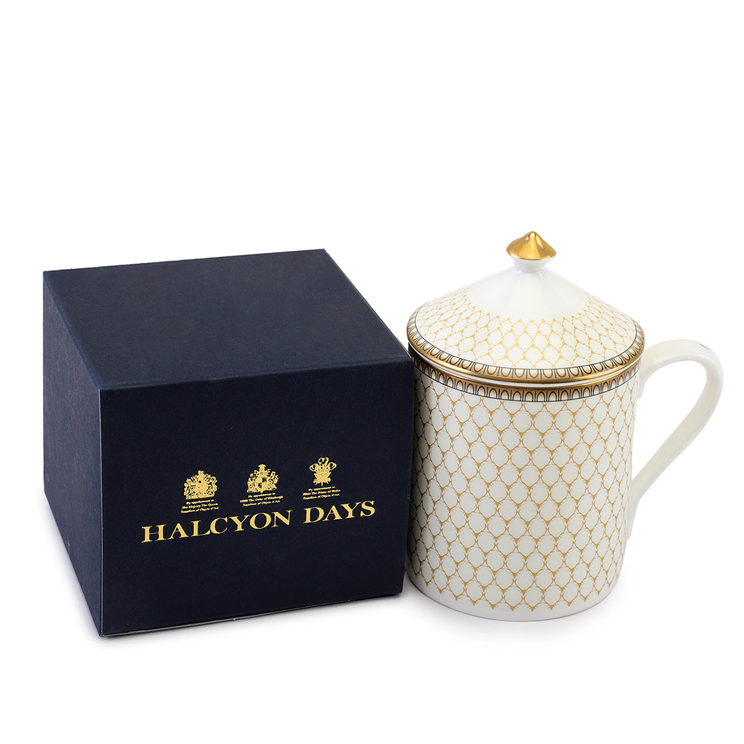 This is an elegant fine bone china mug featuring the iconic Antler Trellis design with gilded accents, adding refined style to your daily tea or coffee ritual.