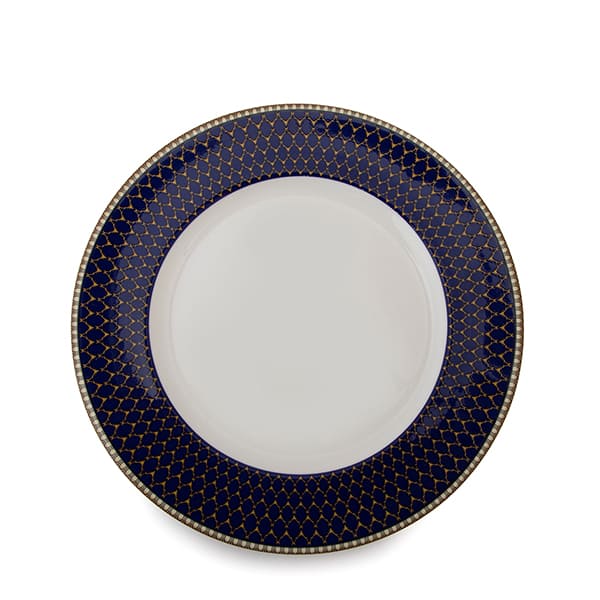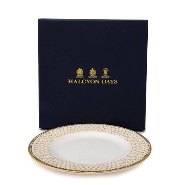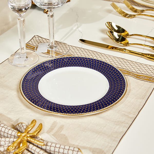 The Antler Trellis collection takes inspiration from an awe-inspiring domed ceiling lined with antlers formerly found at Scotland's Gordon Castle. Handcrafted fine bone china pieces are available in ivory and midnight blue. Gilded with 24ct gold.