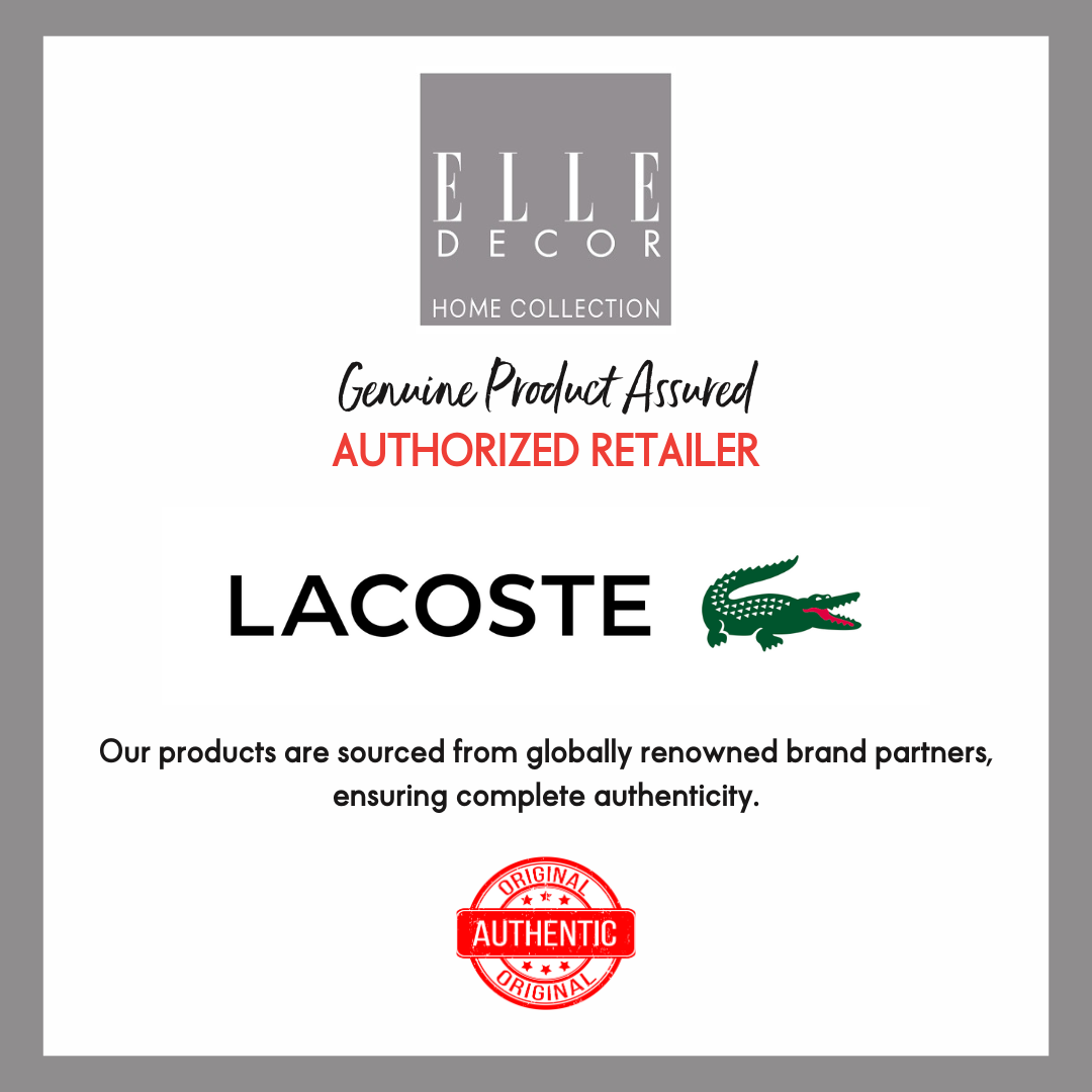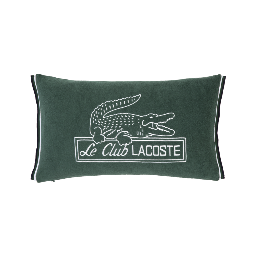 Elevate your home decor with the Lacoste L Le Club Cushion Cover, a stylish accessory that merges comfort with iconic design. Made from soft jersey fabric, it showcases intricate embroidered patterns inspired by the Le Club Lacoste capsule, complete with a contrasting crocodile logo for a signature touch. The rectangle shape and knitted tricolor rib trims on both sides add a refined finish. Available in two versatile colors, Vert and Jaune, this cushion cover effortlessly enhances beds and sofas alike. Certified STANDARD 100 by OEKO-TEX®, it guarantees both sustainability and superior quality for your space.