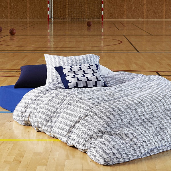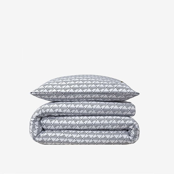A sophisticated duvet cover with a sport-inspired design showcasing Lacoste's signature monogram print. Interlaced three-dimensional logos envelop.