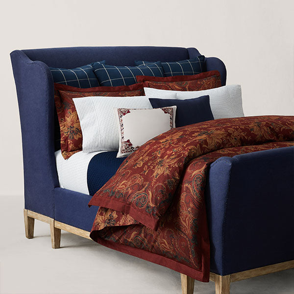 Ralph Lauren’s Inez Paisley Standard Sham, echoes the opulence of the English Jacobean Period. Crafted from 100% OEKO-TEX® STANDARD 100 certified cotton, it features a 300 thread-count sateen weave and a hidden button closure with signature buttons.