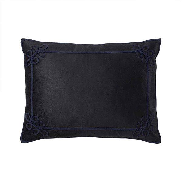 With a hidden zip closure, it ensures easy maintenance while preserving its sleek appearance. Elevate your bedding collection with the luxurious comfort and timeless style of the Merkel Plush Velvet Cushion Case from Ralph Lauren. The classic black and navy combination is versatile, perfect for both bedrooms and formal living spaces.