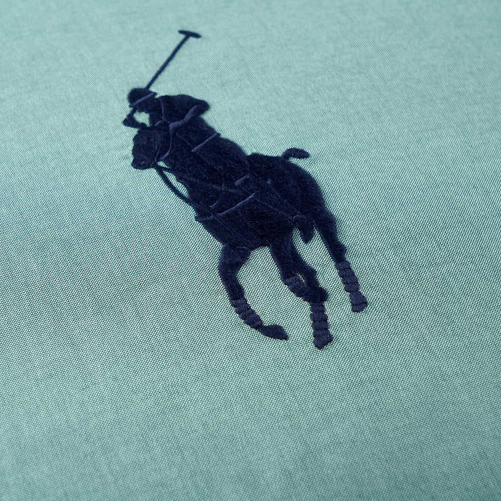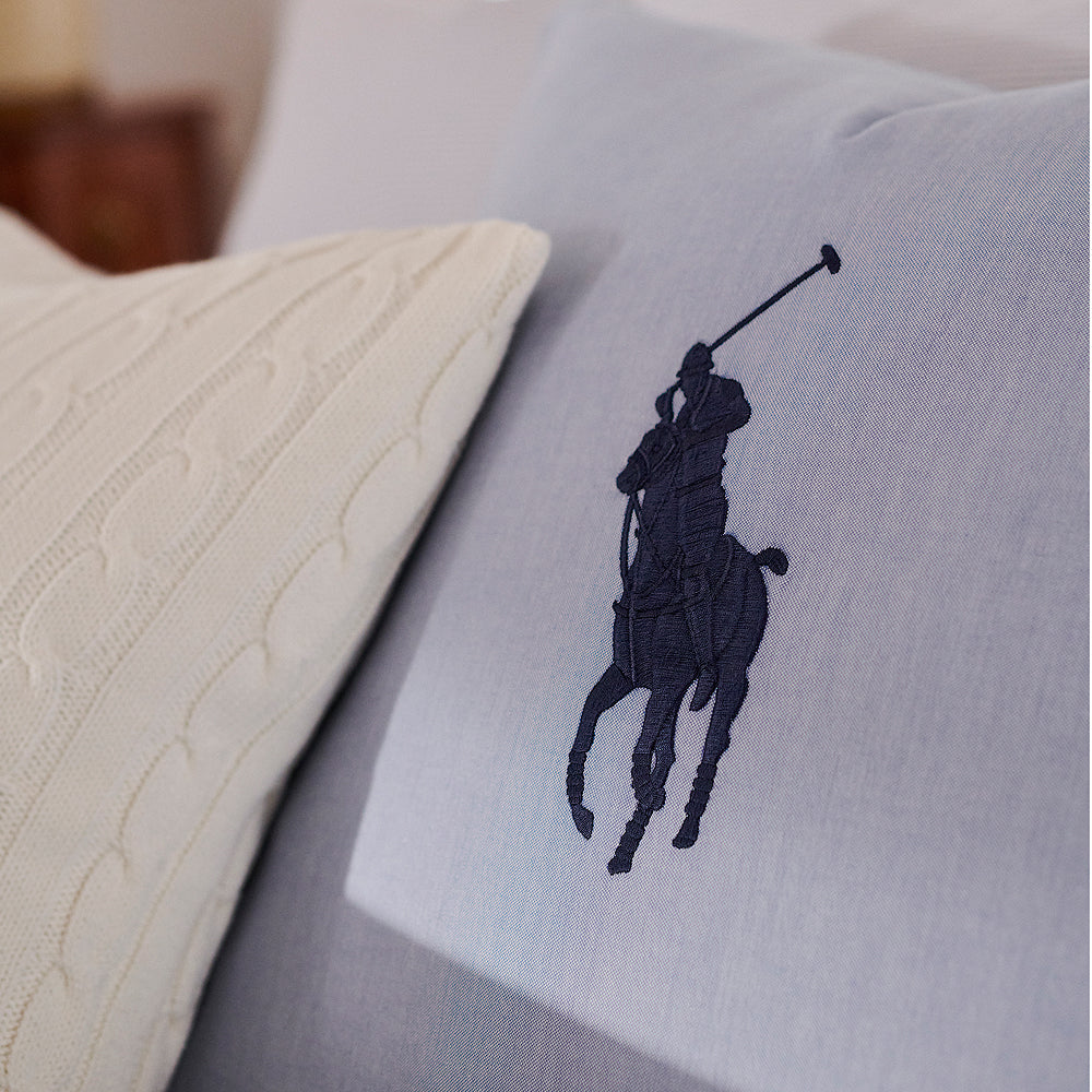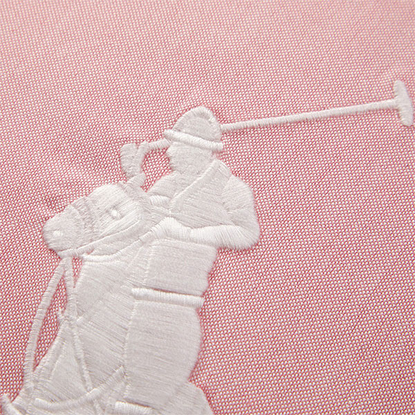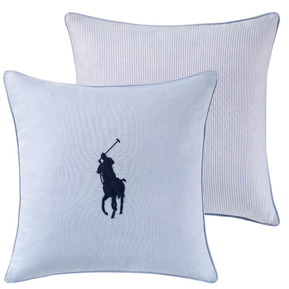 On the front, the signature Polo Pony logo is prominently embroidered, while the reverse boasts a striped pattern matching the Oxford bed linen line. Available in soothing pink, blue and evergreen shades, it adds a touch of refinement to any space.