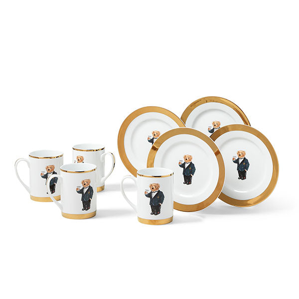 Ralph Lauren's iconic Polo Bear is dressed in his best eveningwear on this playfully luxe mug and dessert plate along with collectible hat box.